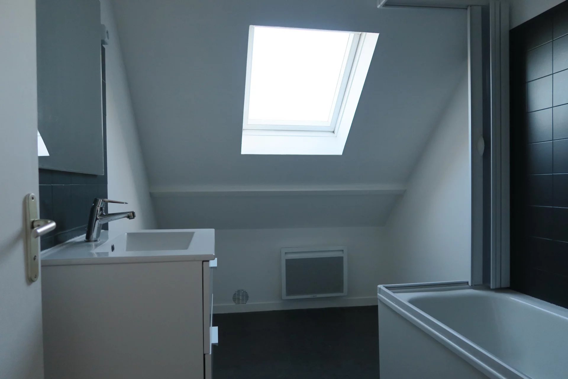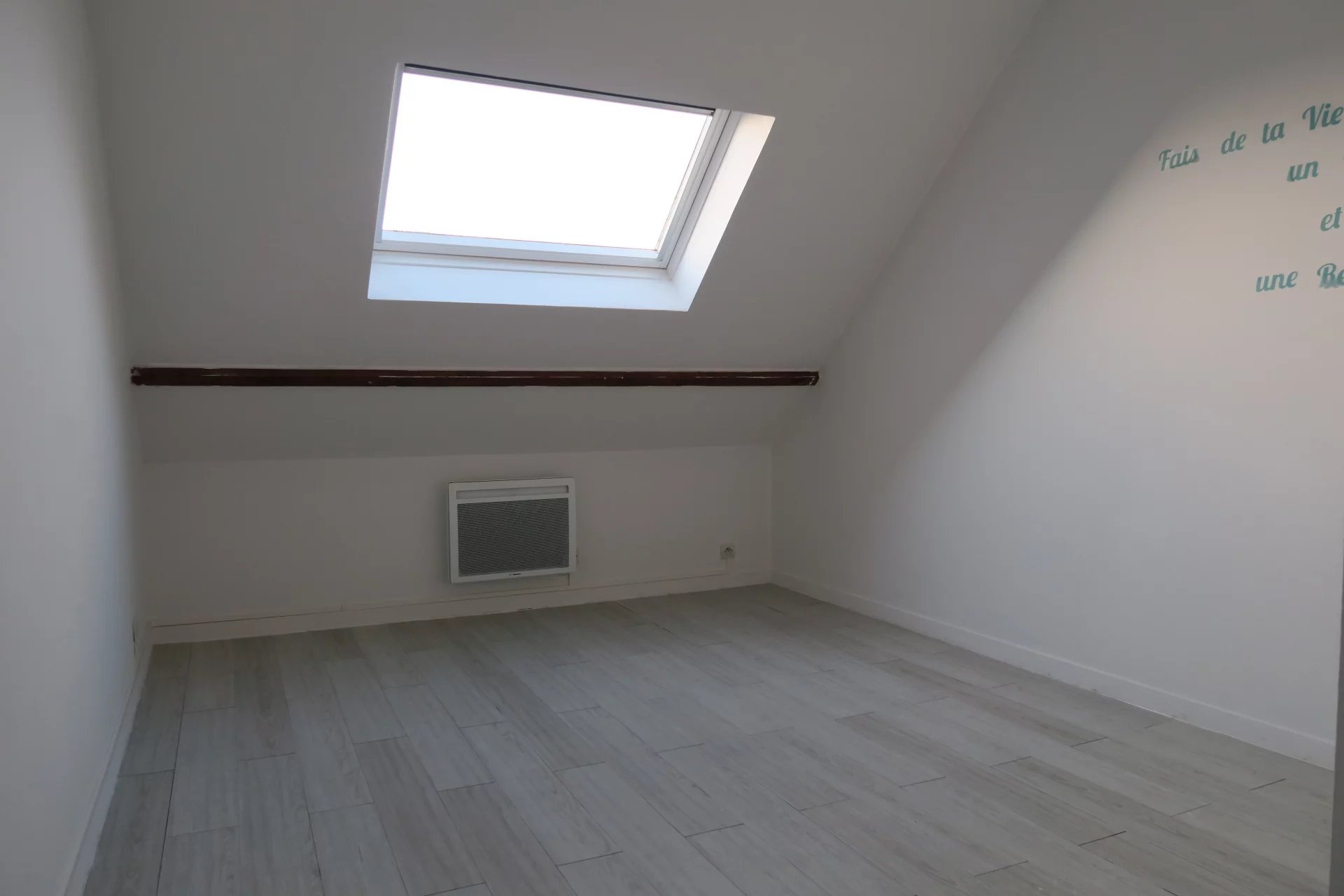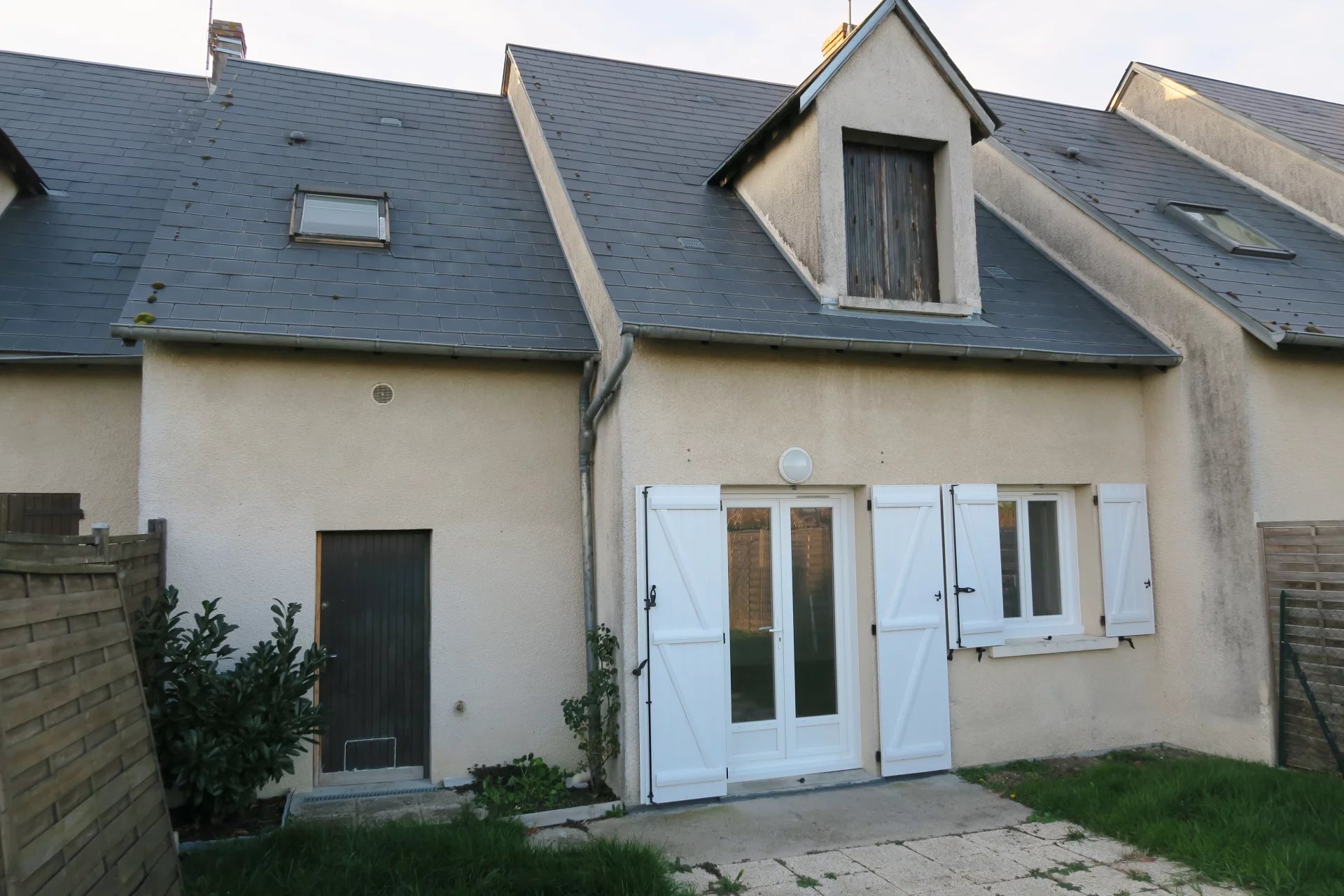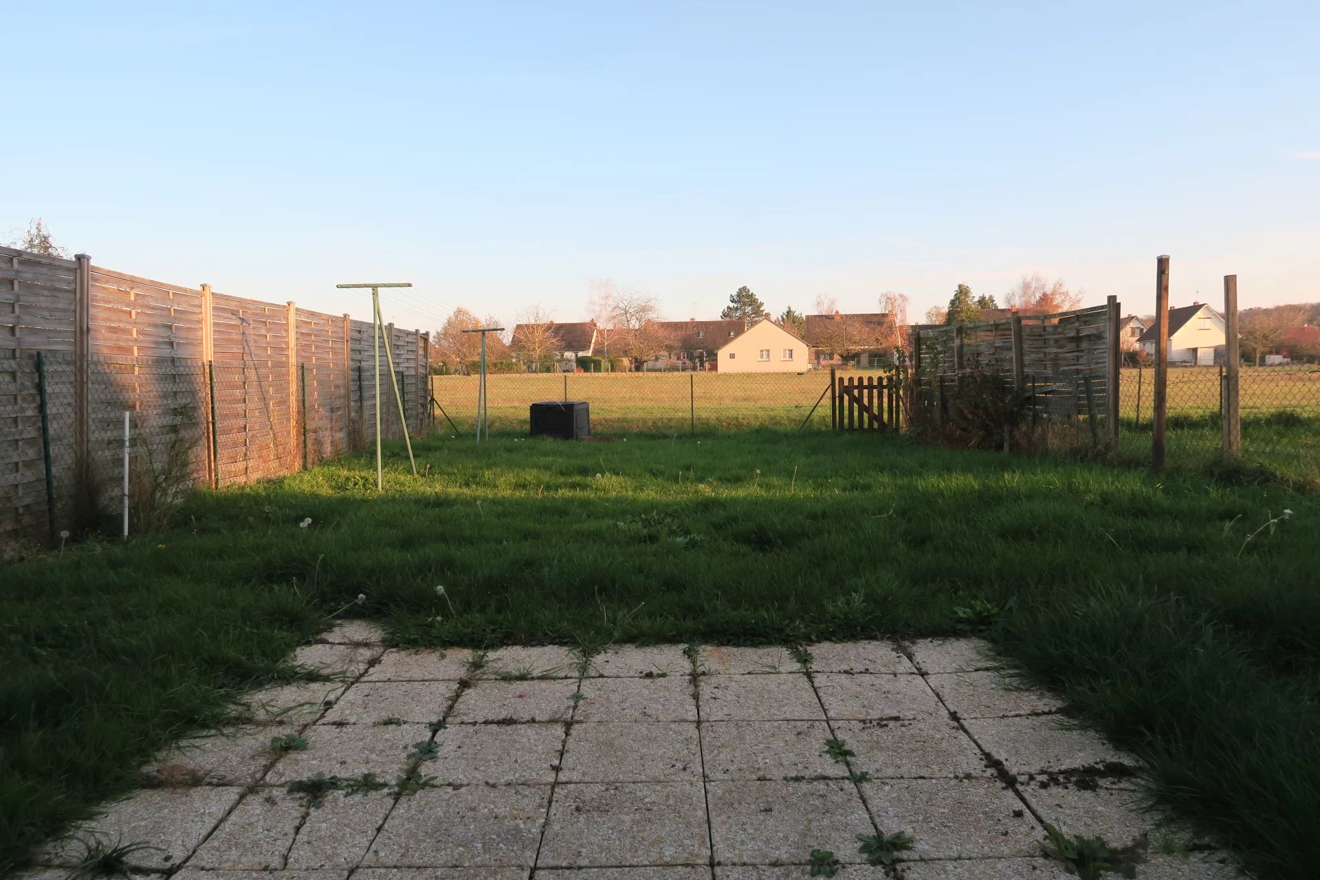 Maison avec garage et jardin comprenant : Entrée avec placard, séjour, cuisine indépendante aménagée et équipée de plaque hotte et four, wc séparé. A l'étage : palier desservant 3 chambres, salle de bains, wc séparé.